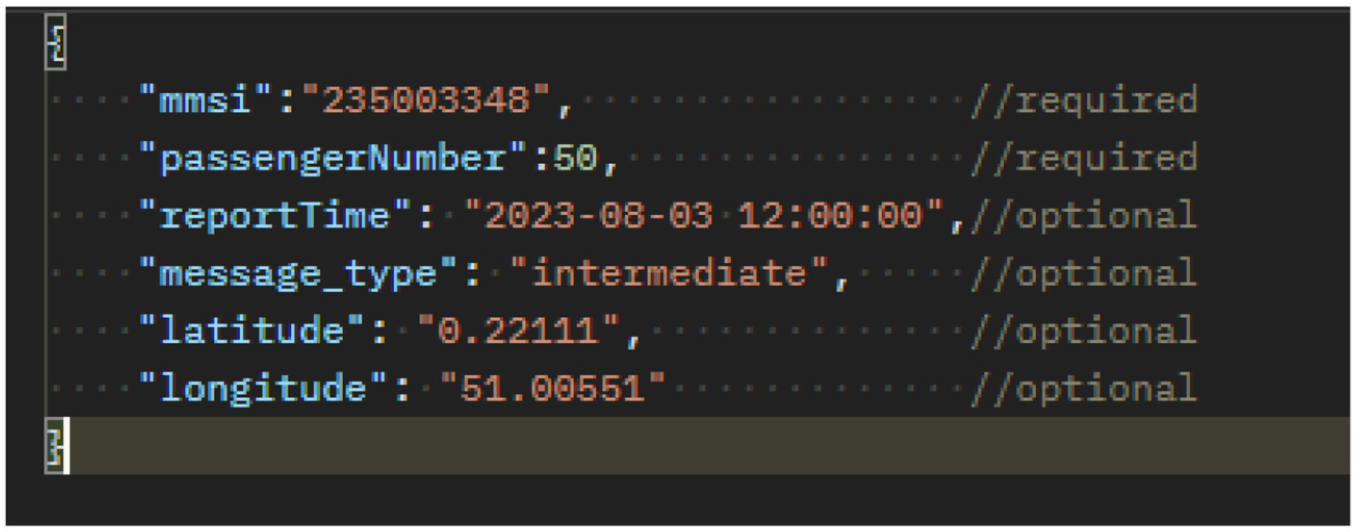 We will also accept submissions via a HTTP JSON POST request that contains an API key (to be part of the request headers) issued to your organisation, the MMSI number of the vessel and the number of people on board as follows: