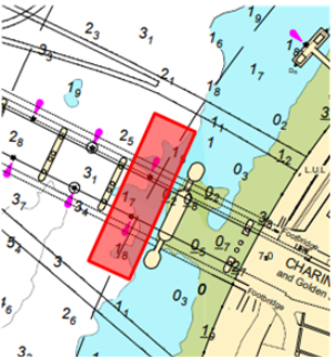 To support the engineering moorings have been placed in Charing Cross No.4. The extent of these moorings will remain within the footprint detailed below. Vessels should navigate with due regard to these moorings.